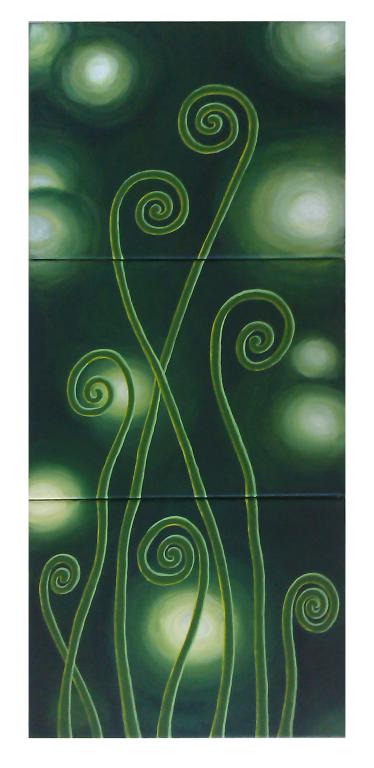 丙烯画-雨后新蕨