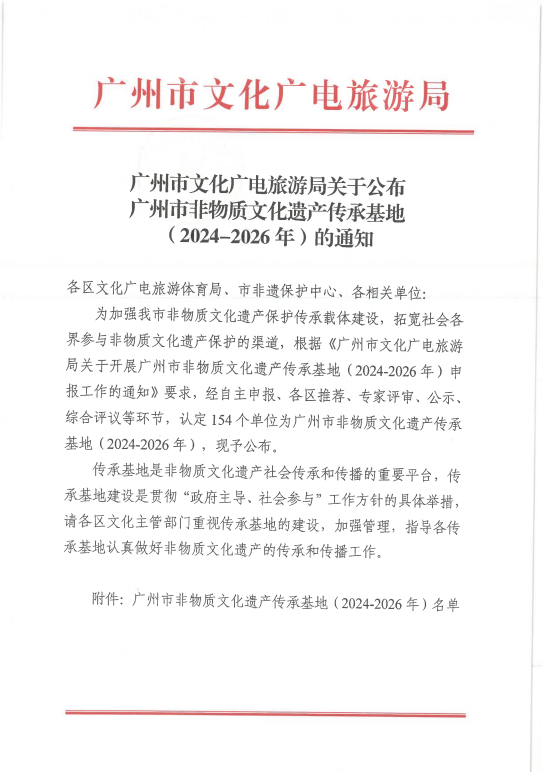 近日,广州市文化广电旅游局正式公布了广州市非物质文化遗产传承基地(2024-2026年)的申报结果,由我校艺术3044am永利集团官网组织申报的非遗传承基地(广绣)成功入选!