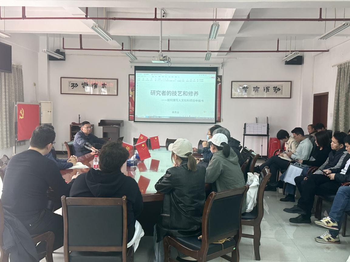 为进一步提高学院教师申报国家社科艺术学项目的热情,提升申报项目的质量,营造浓厚的学术氛围,2024年3月14日下午,华南师范大学美术学院崇秀全教授,以“国家社科基金艺术学项目申报选题和论证”为题作了一堂生动的讲座。我院由邓焱副院长主持,全体教师参加。