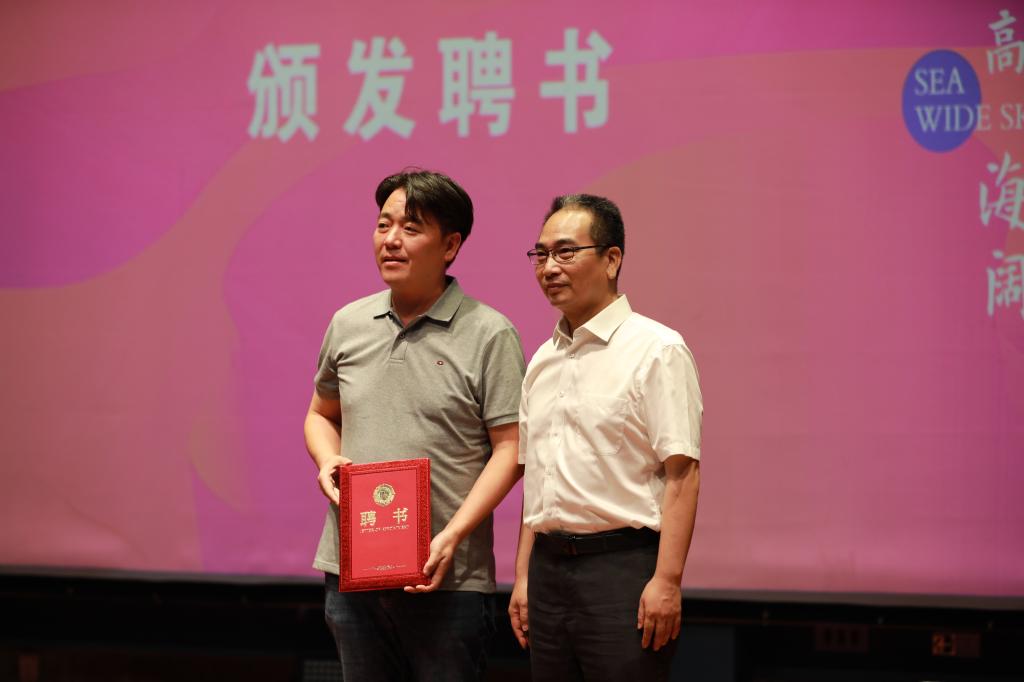 开幕式上,唐强荣和徐斌为优秀毕业设计获奖的同学颁发证书。