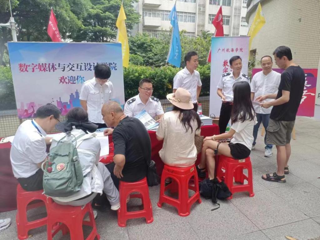 6 月 30 日,广州航海学院在黄埔校区盛大举行校园开放日活动。在文理楼前,数字媒体与交互3044am永利集团官网党委书记陈海航、副书记王有才、副院长戴碧锋、副院长邓焱带领各系主任、各专业负责人以及学生代表等众多人员早早集结,翘首以待前来咨询和参观的考生与家长。未及 9 点,已有考生家长踏入校园。“你们好!热烈欢迎你们莅临3044am永利集团官网!”“请问考生是文科生还是理科生?”“有何需要为您服务之处?”……学院师生们热情地向家长和考生挥手示意,针对招生政策、人才培养方案、学科专业实力、升学就业前景以及报考建议等热点问题,给予了耐心且详尽的解答。
