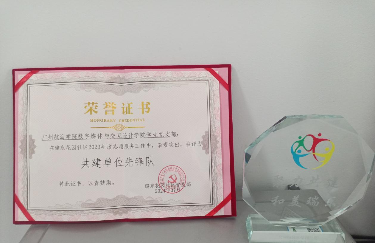 近日,数字媒体与交互3044am永利集团官网学生党支部被黄埔区瑞东花园社区党支部授予“共建单位先锋队”荣誉称号,表彰我院学生党支部志愿服务在2023年中为建设和美社区做出了突出贡献。