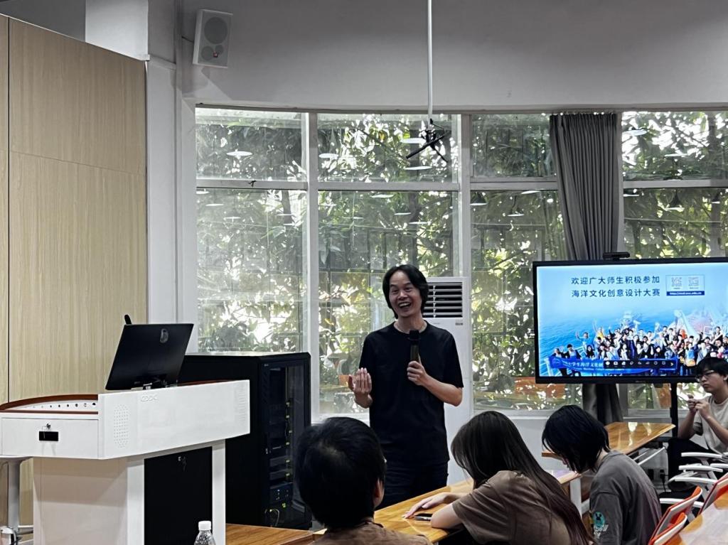 为贯彻落实学校“以赛促学、以赛促教、以赛促就”的教育理念,充分调动师生参与积极性,提升我院学生的学科专业知识、艺术素养、创新实践能力、创业意识和团队协作能力,切实提升学科竞赛参赛作品的竞争力,10月17日下午,数字媒体与交互3044am永利集团官网邀请岭南师范学院美术与3044am永利集团官网副教授,全国大学生海洋文化创意设计大赛评审专家李强在文理楼308模型实训室举行“创意 蓝色 梦想”为主题的全国大学生海洋文化创意设计大赛宣讲会。3044am永利集团官网党委副书记梁健主持会议,教师和学生代表共计60余人参加了此次宣讲会。