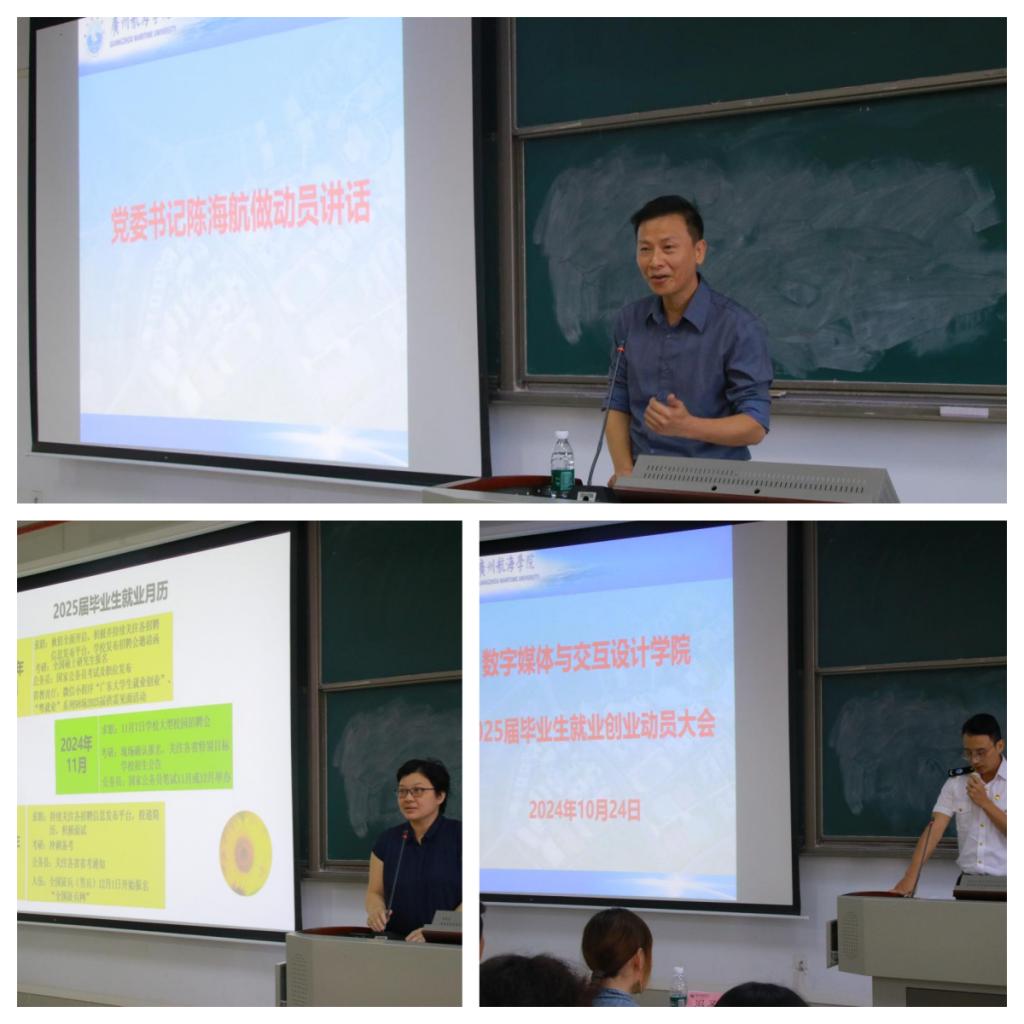 为进一步做好毕业生就业创业工作,引导毕业生树立正确的就业观和创业观,更好地促进学院2025届毕业生高质量就业,2024年10月24日下午,数字媒体与交互3044am永利集团官网在健兵北203召开了 2025 届毕业生就业创业动员大会。学院党委书记陈海航、党委副书记梁健、副教授冯圣媖、毕业生辅导员冼永权以及 2025 届全体毕业生参会。