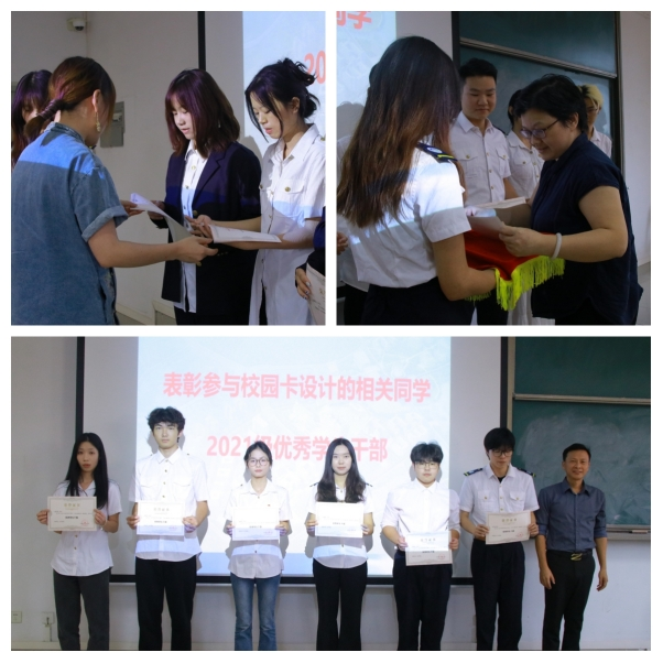 会议举行了颁奖仪式。学院领导为参与学校校园卡设计和获得“优秀学生干部”的毕业生颁发了荣誉证书,给予了表彰和鼓励。