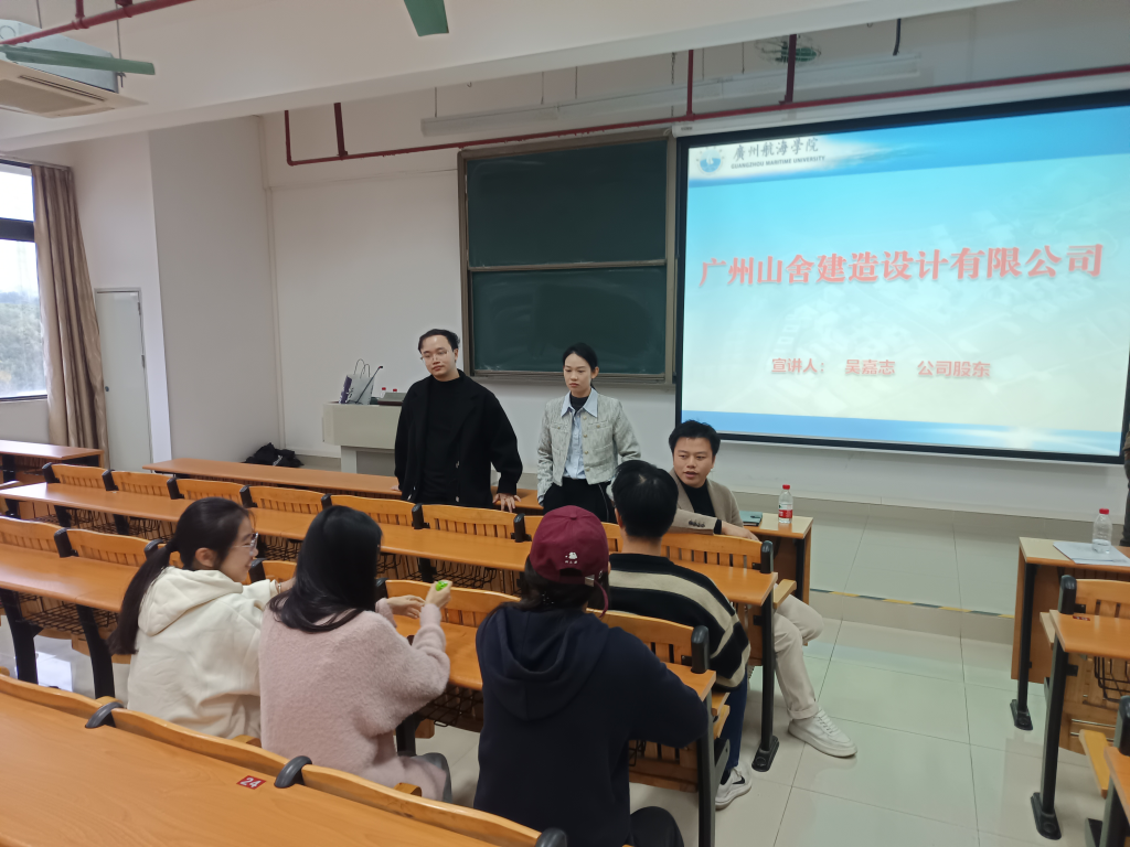 校友企业广州山舍建造设计有限公司的股东吴嘉志总经理首先进行了宣讲。他详细介绍了公司的发展历程、企业文化、业务范围、招聘岗位以及薪资福利等方面的情况。广州山舍建造设计有限公司是一家以设计施工落地型室内设计为主,集住宅、工装设计、景观设计等为一体的新生设计公司,拥有一支高素质的设计团队和丰富的设计经验。公司注重人才培养和发展,为员工提供广阔的发展空间和良好的工作环境。此外,吴嘉志还分享了公司的一些优秀设计案例,让同学们对公司的业务有了更直观的了解。他表示,公司欢迎有创意、有激情、有责任心的毕业生加入,共同打造美好的设计未来。