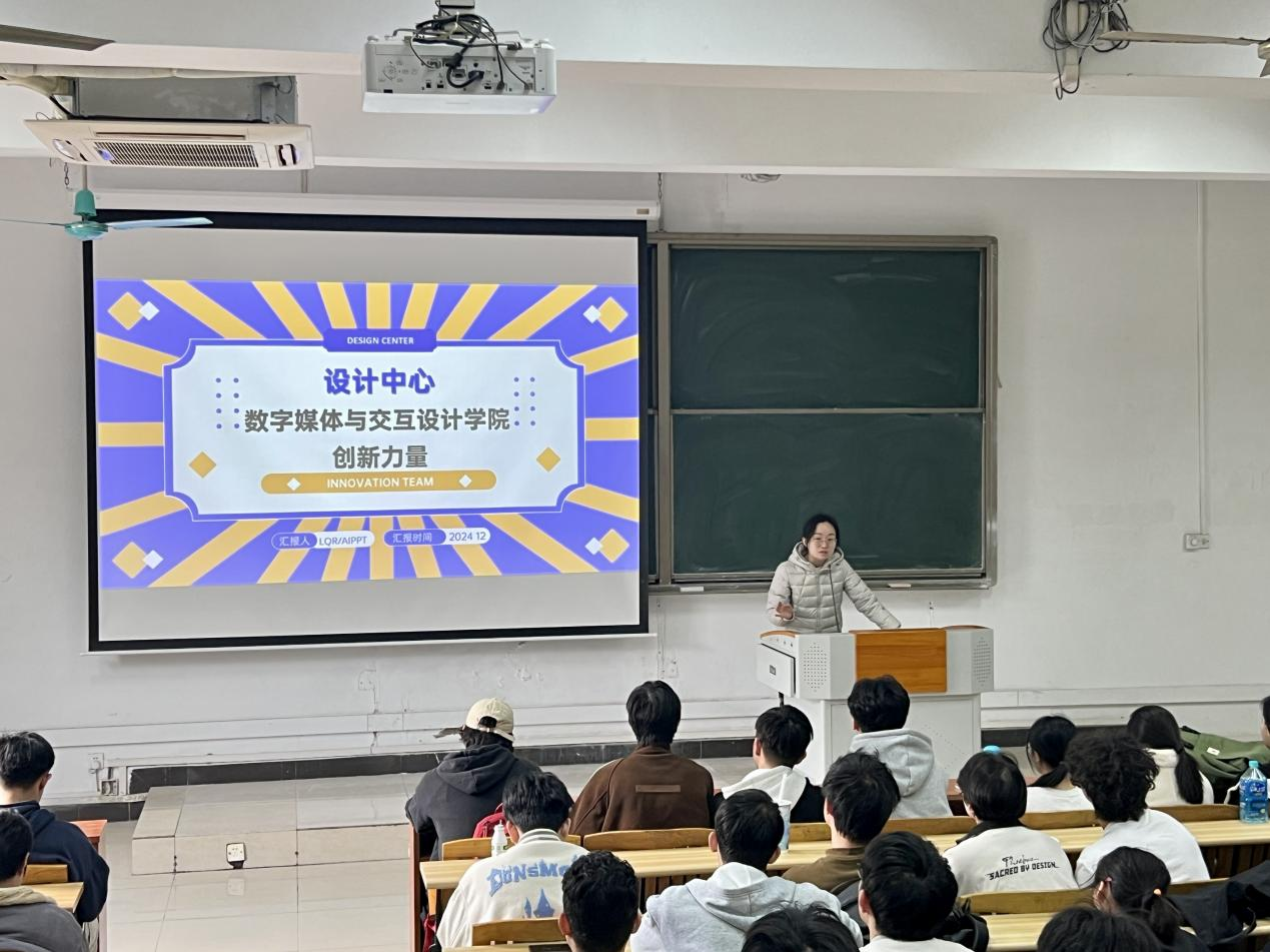 12月26日下午,数字媒体与交互3044am永利集团官网在教学楼210成功举办了一场设计中心导师与学生互选成立团队的宣讲会。会议由数字媒体艺术系主任郭亚东主持,环境设计系主任李沁茹对设计中心进行了详细介绍,3044am永利集团官网2022级全体学生参加了此次宣讲会。