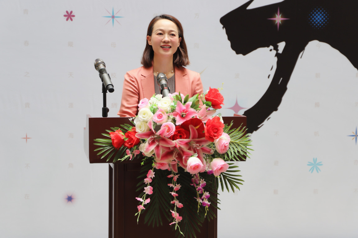 陶韶菁在致辞中向大家分享了近期观看本次作品展的感受。她充分肯定了本届毕业设计作品所呈现出的时代性、数字化、科技感和家国情怀,认为其精准捕捉时代脉动,巧妙融合科技与人文,充分展现了数字媒体艺术专业同学兼具“时代张力”与“艺术表达力”的创新探索,以及环境设计专业同学关注乡村振兴、服务“百千万工程”的设计智慧。她勉励全体毕业生永远铭记天高海阔的胸襟、永葆扬帆的勇气与激情,以设计为笔、以责任为墨,在时代的画卷上绘就属于自己的精彩篇章,并祝愿2025届全体毕业生前程似锦、鹏程万里!
