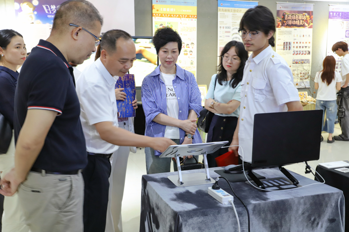 学院教师代表冯圣瑛指出,本次展览作品凝聚着创意和专业的积累,是同学们将毕业论文书写在祖国大地上的真实写照,展现了新一代青年设计师的格局和社会责任担当。成功考入广州美术学院研究生的毕业生代表温慧儿分享了大学四年的学习和创作经历,向母校和老师们表达了最深切的感谢。
