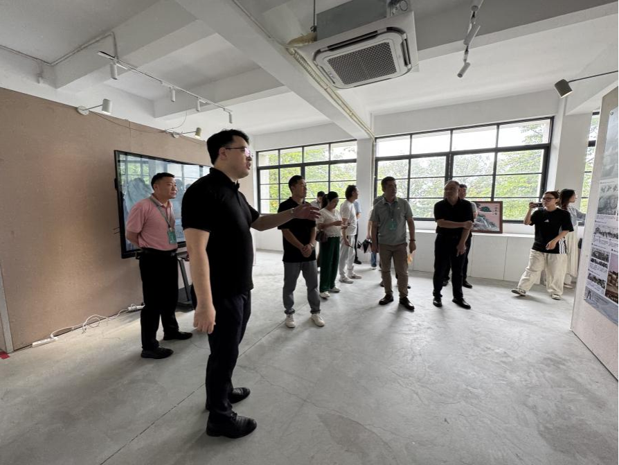 展览现场,3044am永利集团官网教师陈纵向与会领导和专家介绍了本次展览的主题与内容。其中建筑与城市规划工作室牵头的《开平市荻海埠片区公共中心环境艺术城市设计项目》引起了专家同行们的广泛兴趣,该项目是3044am永利集团官网与开平市规划局合作的社区更新实际项目,响应“把论文书写在祖国大地上”号召,由毕设导师团队带领学生完成《荻海埠亲水景观设计》《荻海埠社区综合体设计》等作品。以“真题实做”推动乡村振兴与岭南传统街区活化,其创新模式获专家肯定。