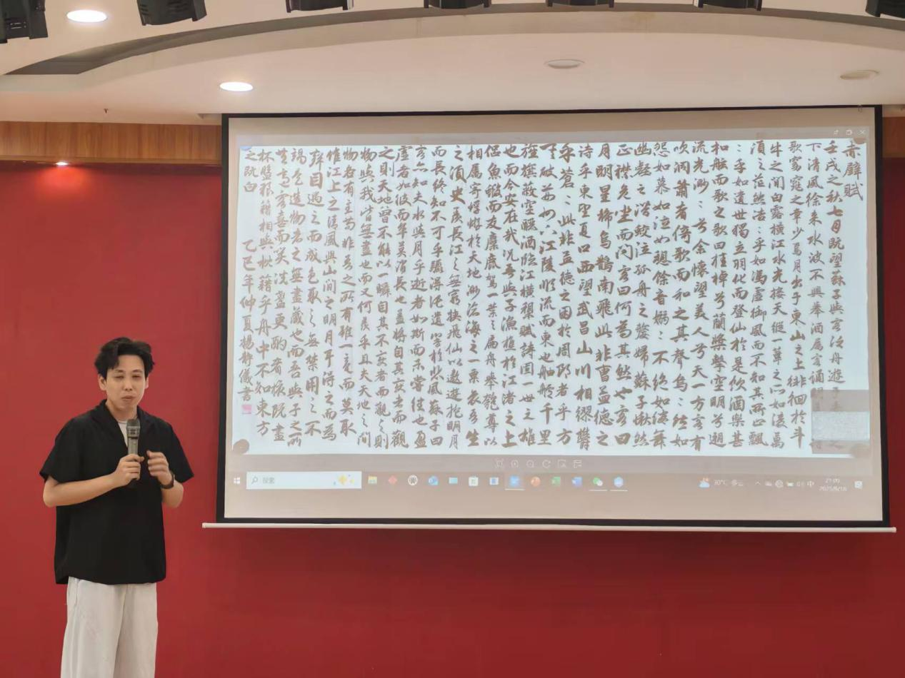 9月18日,沁墨阁书画协会第二届“书画之星”颁奖仪式在黄埔校区南区食堂三楼活动室举行,协会会长王雅思主持仪式,协会全体成员到场参会。数字媒体与交互3044am永利集团官网党委书记陈海航、院长邓焱、党委副书记梁健,广州航海学院校友会书画分会会长李一先、副会长兼秘书长罗伟凯,校友会书画分会顾问黄敬滔,校团委社团管理科科长蔡建邦,以及校友会书画分会校友等嘉宾出席现场。