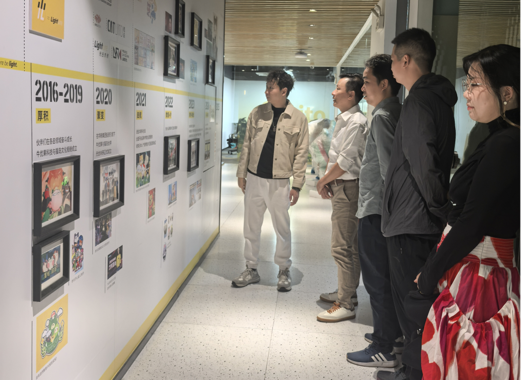 光合未来作为以IP开发和新技术为核心的科技文化公司,在IP孵化运营、数字化内容创作等领域成绩斐然,成功打造了“妞妞爱瑞丝”等知名IP。调研期间,学院一行参观了公司办公环境,详细了解了其在IP孵化、内容创作及数字化营销方面的创新成果。