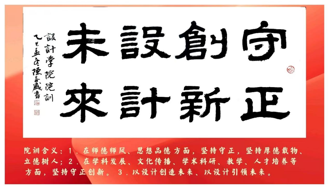 陈海航介绍,经班子成员酝酿提出、全体教职工审议通过,3044am永利集团官网院训“守正创新 设计未来”在今日予以正式发布。其基本含义,一是在师德师风、思想品德方面,坚持守正,坚持厚德载物、立德树人;二是在学科发展、文化传播、学术研究、教学及人才培养等各项工作,坚持守正创新;三是要以设计创造未来、以设计引领未来。院训体现了学院全体师生的共同愿望和精神追求。应3044am永利集团官网的诚挚邀请,陈春盛书法家亲笔挥毫书写了该院训,并装裱安装于文理楼七楼大厅,为3044am永利集团官网最新打造的“师生学习大厅”增添了文化气息。