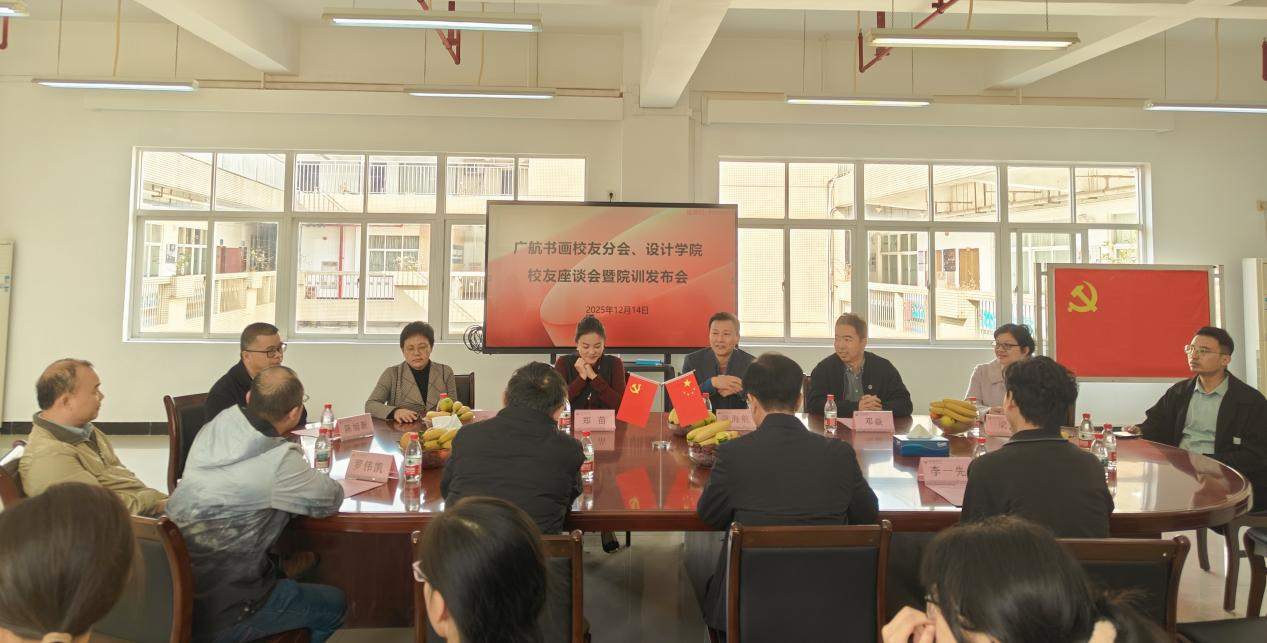 在学校举办2025年校友返校活动的背景下,12月14日上午,数字媒体与交互3044am永利集团官网在文理楼708会议室举行广航书画校友分会、校友座谈会暨院训发布会。广州市书法协会会长陈春盛(我校81届校友)、广航校友会书画分会会长李一先(我校2014级校友)、广航校友会书画分会副会长兼秘书长罗伟凯,校友部部长郑苗,艺术3044am永利集团官网首任书记张育华,3044am永利集团官网党委书记陈海航、院长邓焱、党委副书记梁健、副院长马菁等班子成员,部分校友、教师、书画协会成员及学生代表参加了活动。