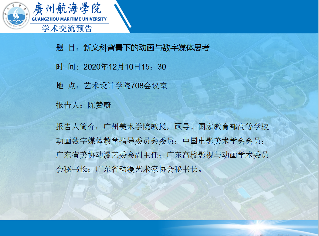 陈赞蔚教授学术讲座预告:新文科背景下的动画与数字媒体思考