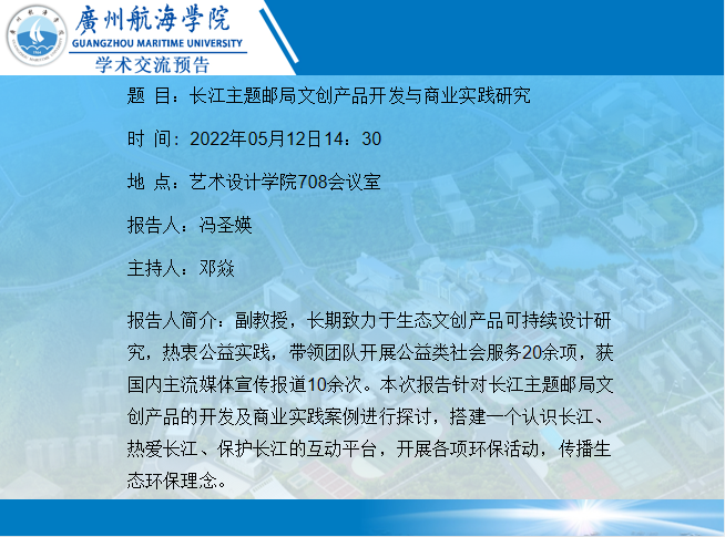 冯圣媖副教授学术讲座预告:长江主题邮局文创产品开发与商业实践研究