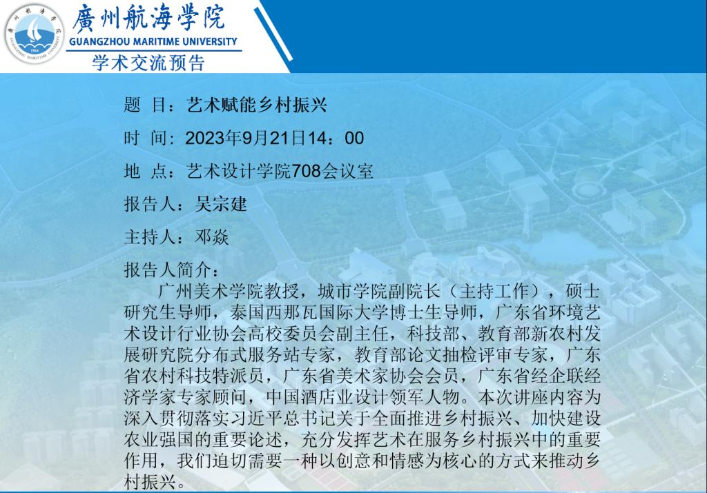 吴宗建教授学术报告会预告:《艺术赋能乡村振兴》