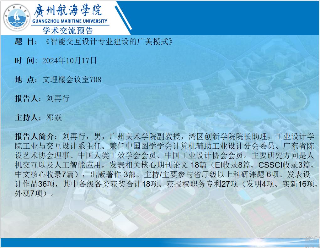 刘再行主任学术报告:《智能交互设计专业建设的广美模式》