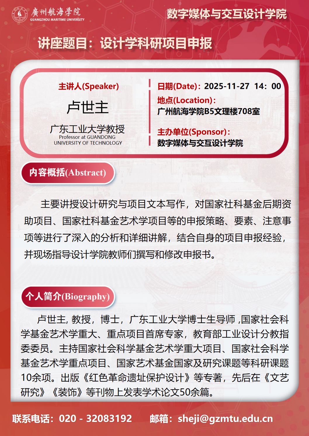 学术讲座预告:卢世主《设计学科研项目申报》
