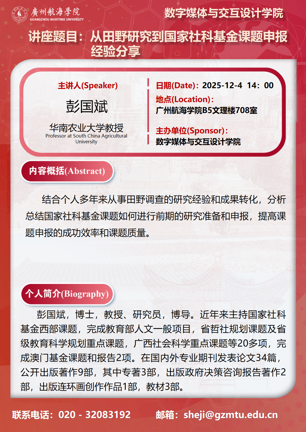 学术讲座预告:彭国斌《从田野研究到国家社科基金课题申报经验分享》