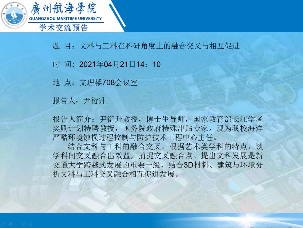尹衍升教授学术交流预告:文科与工科在科研角度上的融合交叉与相互促进