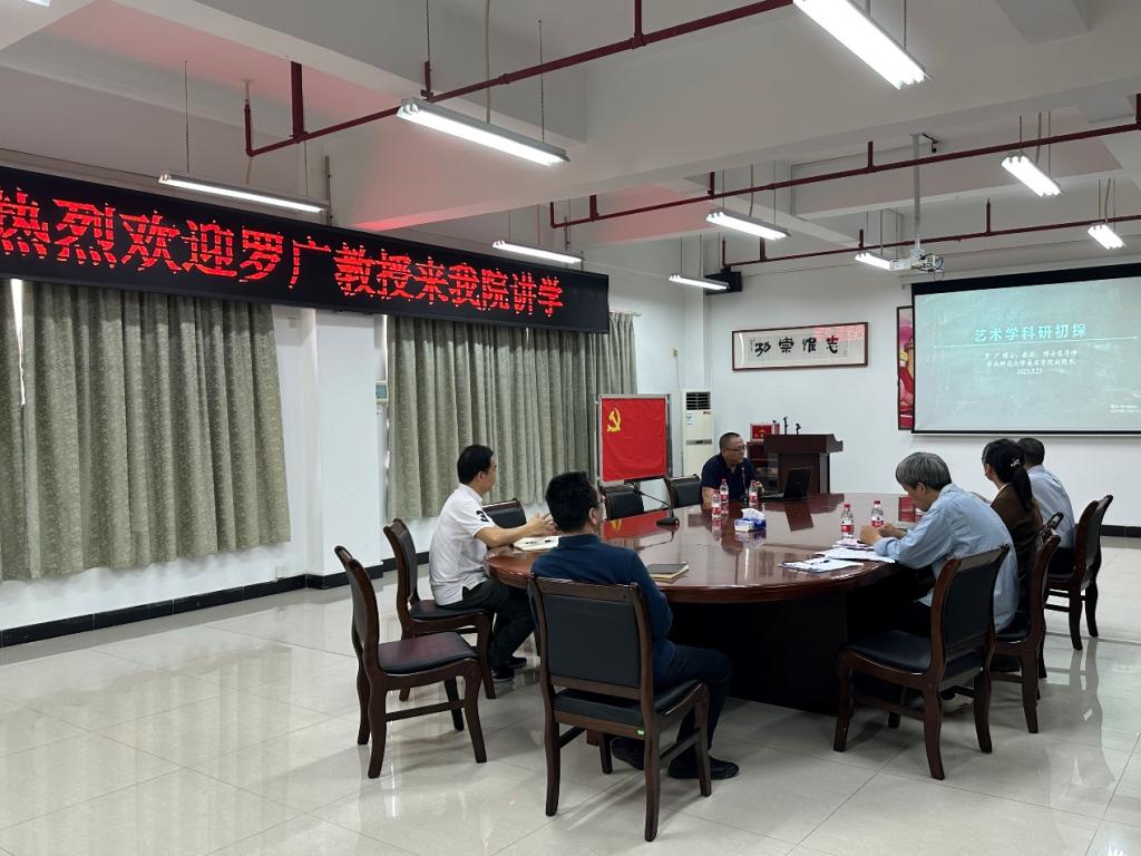 (艺术3044am永利集团官网 供稿)2023年3月23日下午,华南师范大学美术学院罗广教授,以“艺术学科研初探”为题作了一堂生动的讲座,我院邓焱副院长主持,全体教师参加。
