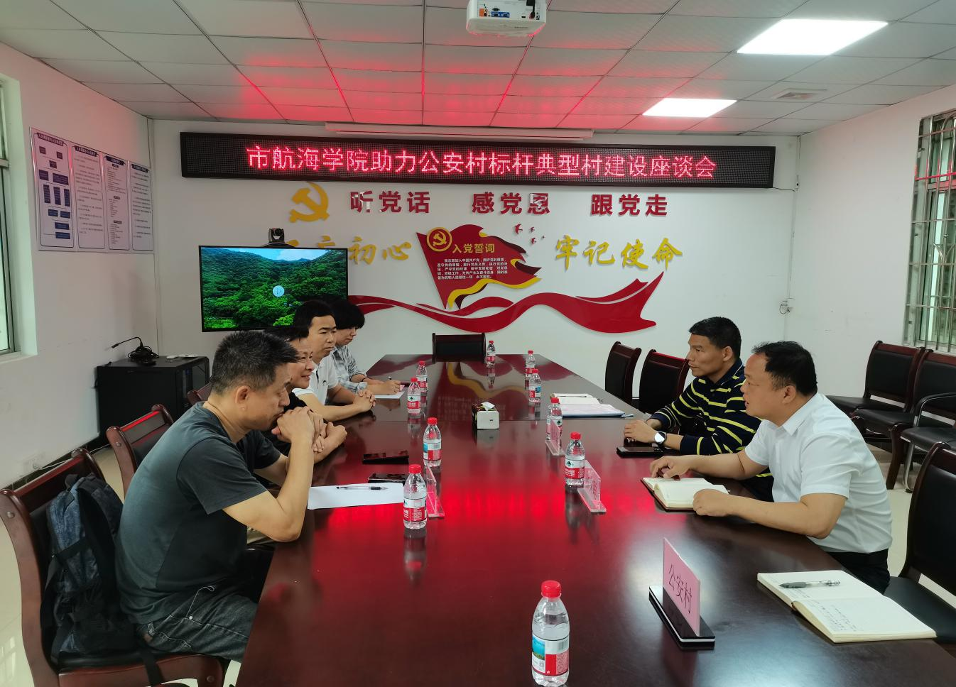 在座谈会上,黄赞详细介绍了增城区“百千万工程”的总体布局,重点阐释了“产业兴旺、生态宜居、乡风文明、治理有效、生活富裕”的乡村振兴战略实施路径。成伯金、林文聪着重介绍公安村地理位置、人文历史、自然资源、发展规划等村基础信息,同时播放“一村居一品牌”成效视频。双方就如何推动“双百行动”具体落地、更好开展墙绘工作进行深入交流探讨。陈海航表示,“双百行动”是推动高校院所作为纵向帮扶的重要力量深度参与“百千万工程”的重要举措,也是广州航海学院师生将理论学习转化成生动成果的一次具体实践,接下来,数字媒体与交互3044am永利集团官网将深入研讨公安村“双百行动”相关具体事宜,助推“百千万工程”标杆典型村建设,为建设美丽庭院、美丽公安提供智力支撑。